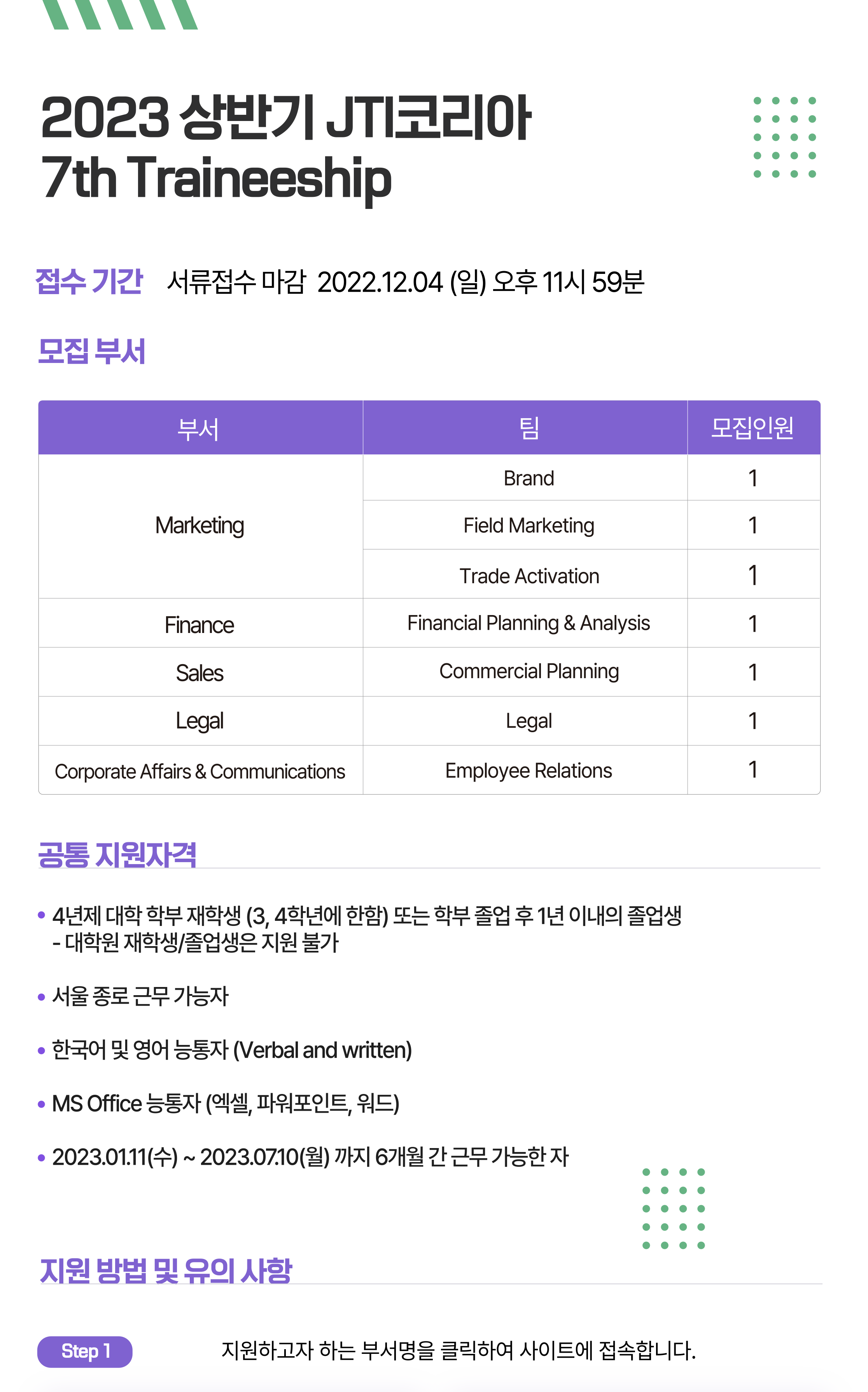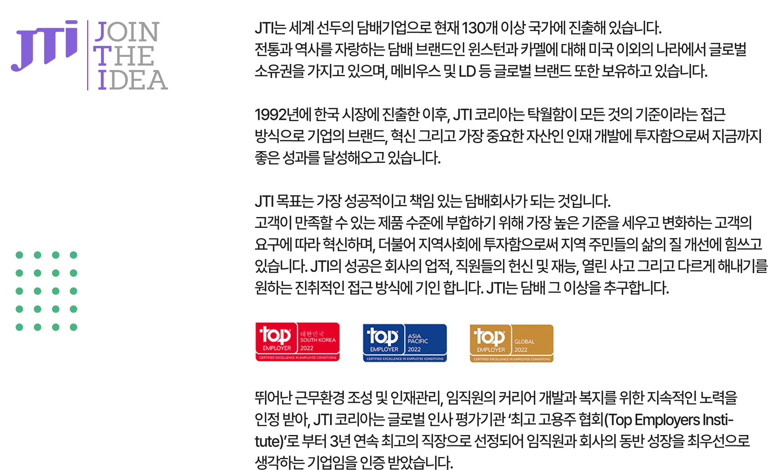 JTI채용 홈페이지를 수시 참고 바랍니다.