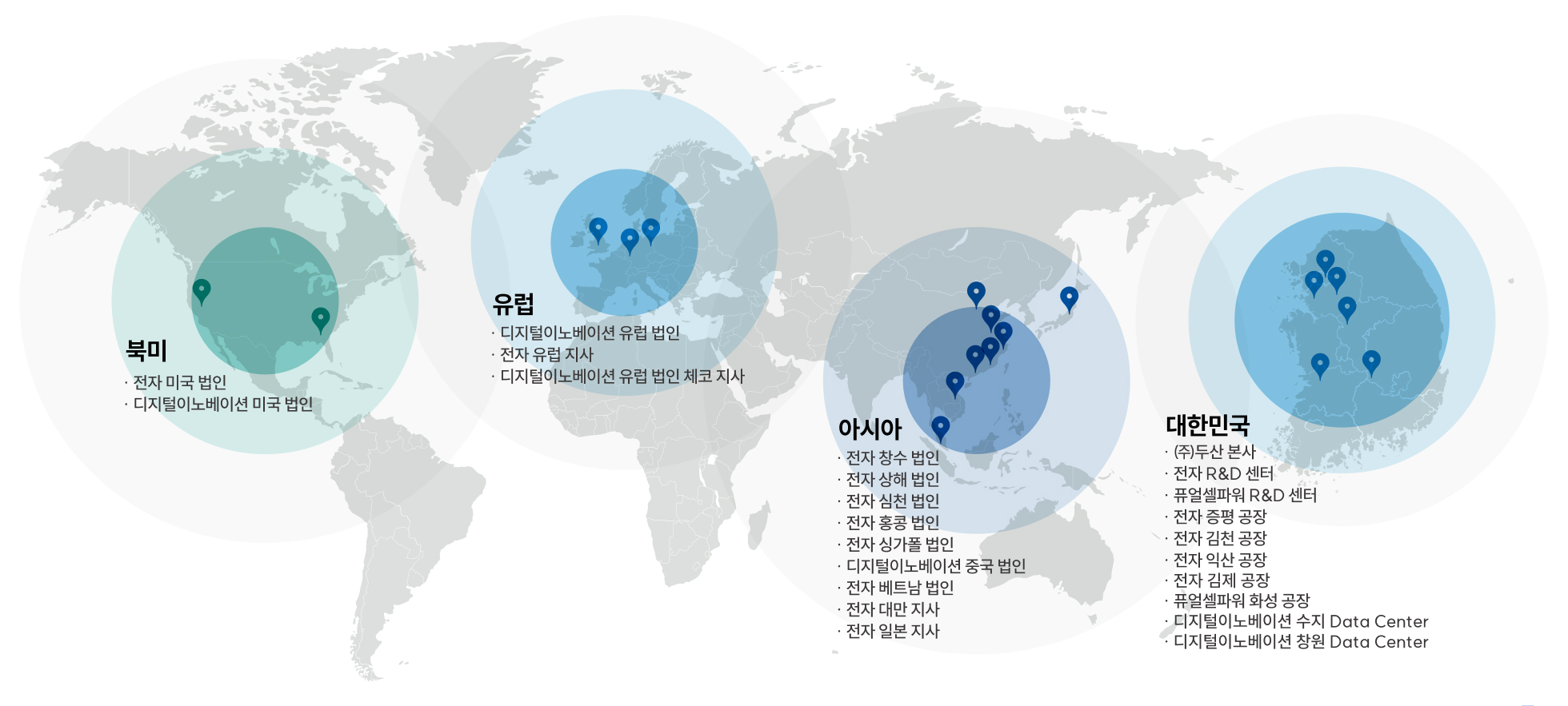 *2023년 말 (주)두산(전자, 퓨얼셀파워, 유통, DDI 등)의 해외법인을 포함한 기준이며
