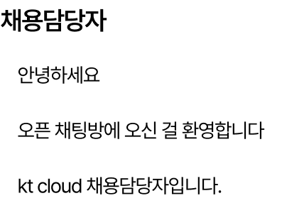 - 카카오톡오픈채팅방“kt cloud 2025년 신입사원 채용 상담회” 검색