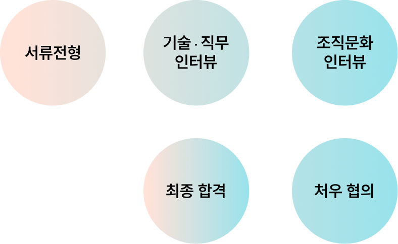 - 기술⋅직무 인터뷰는 이력 및 경력 사항에 따라 1~2일에 걸쳐 진행됩니다.